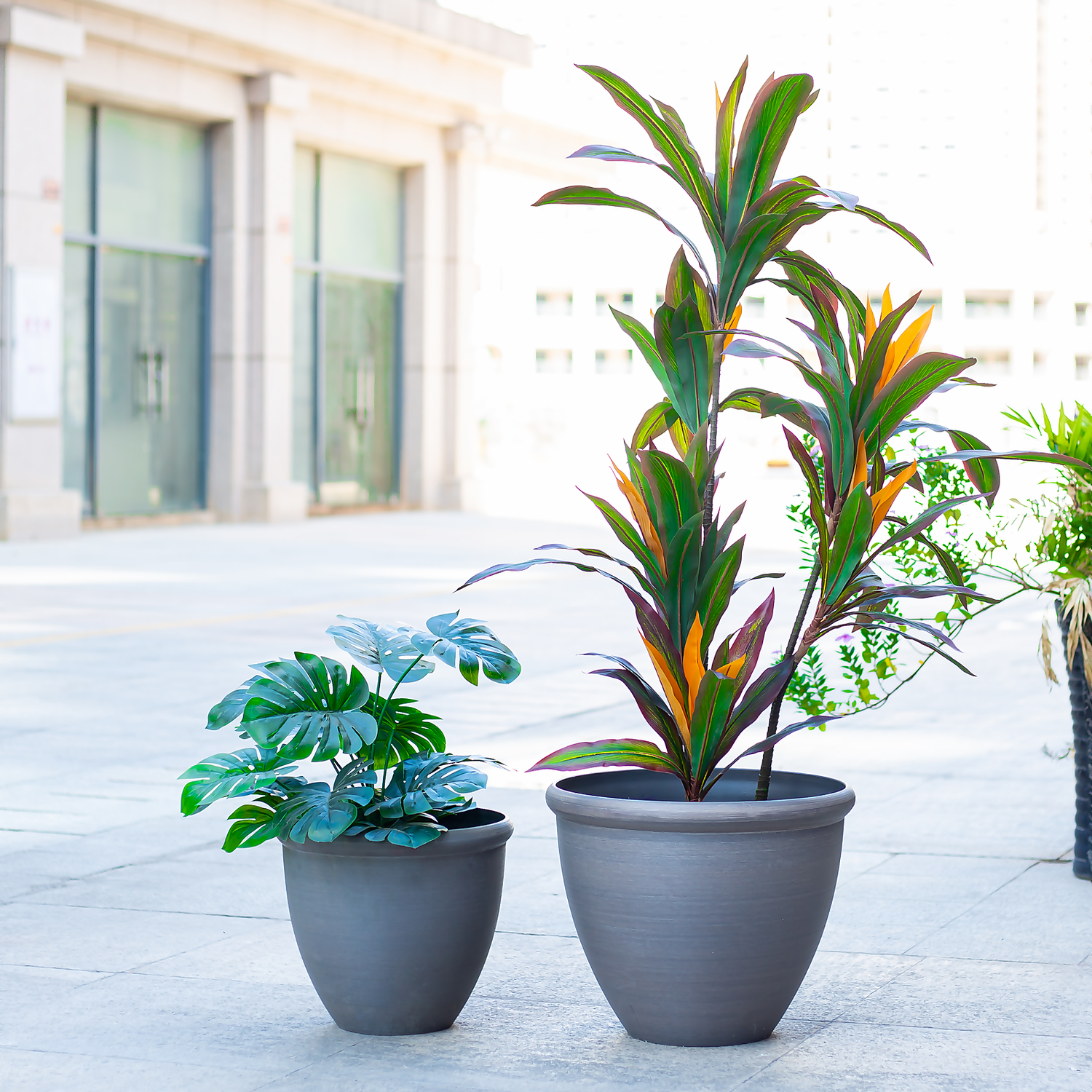 Create an impressive display of blooms with this 45cm planter. This visually appealing pot has a subtle stone effect finish that would look wonderful atop your decking or patio. For a striking effect, why not use multiple planters to dot around your outdoor space? The planter is crafted from environmentally friendly materials, with a gorgeous natural stone appearance. It is lighter than stone, making planting and manoeuvring much easier. Pop it in a new position with ease when your garden needs a new look. The planter is both UV and water-resistant as well as recyclable.